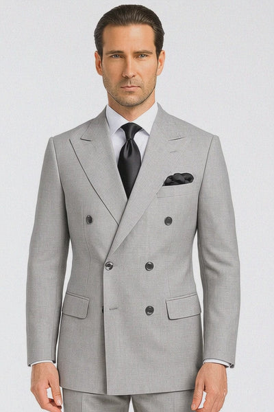 Rossiman Men’s Grey Wool Suit – Classic Fit with Baggy Pleated Wide-Leg Trousers