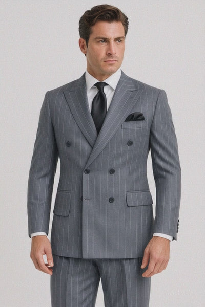 Rossiman Suit - Classic Fit Athletic Cut 100% Wool Super 150s Italian Fabric Peak Lapel in Color Grey