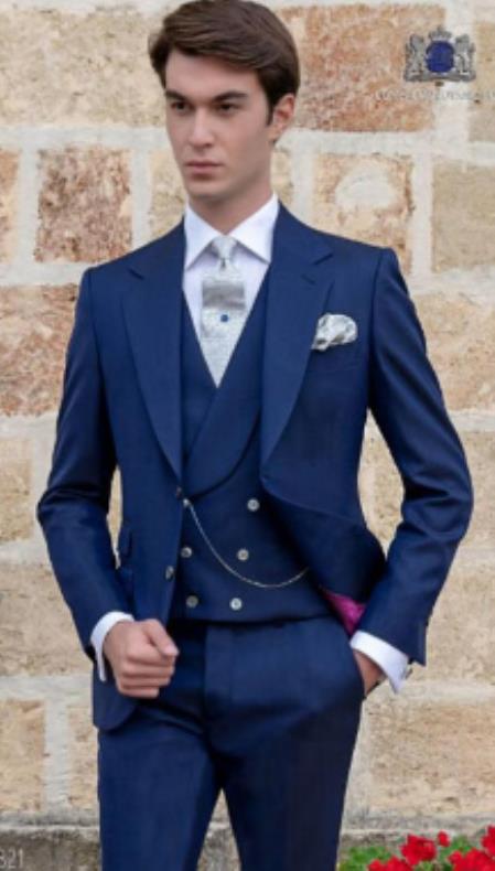 Royal Blue Suits - Cobalt Blue Vested 3 Pieces Suits - Wedding Suit