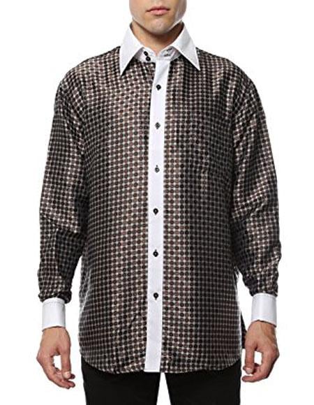 Shiny Satin Floral Spread Collar Paisley Dress Club Clubbing Clubwear Shirts Flashy Stage Colored Two Toned Woven Casual Geometric Brown-White Men's Dress Shirt