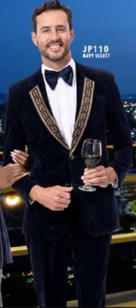 SKU#JA58428 Velvet Suit Matching Velvet Pants - Navy Suit