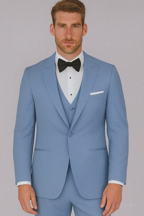 Sky Blue ~ Powder Steel Blue Suit 2 button Vested Flat Front Pants - Dusty Blue Suit