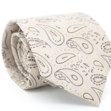 Slim Beige Classic P A I S L E Y Necktie with Matching Handkerchief - Tie Set - Men's Neck Ties - Mens Dress Tie - Trendy Mens Ties