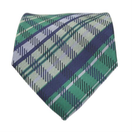 Slim Green / Blue Glen Classic Necktie with Matching Handkerchief - Tie Set - Men's Neck Ties - Mens Dress Tie - Trendy Mens Ties