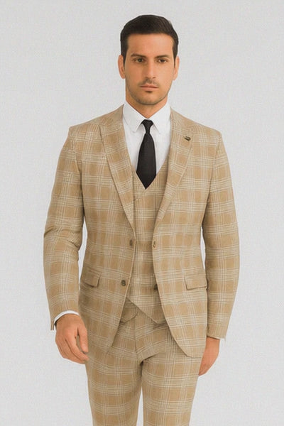 This beige plaid suit is absolutely sharp. The pattern is bold but still professional, and the fit is excellent once hemmed. I wore it to a wedding, and I got more compliments than the groom! Stacy Adams never disappoints. -Pavel