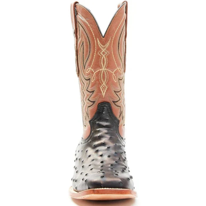Men's Cahill Print Ostrich Square Toe Boots Black