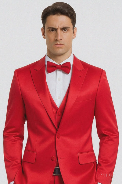 Tazzio Men's Formal Red Satin 3 Piece Slim Fit Suit with Peak Lapel – Modern