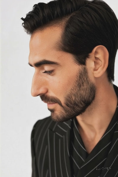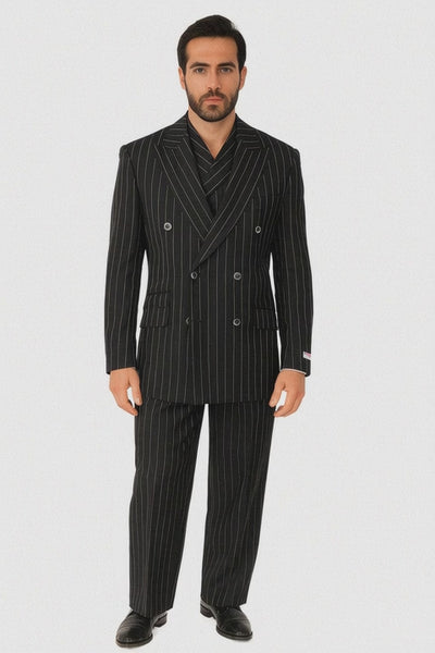 Tiglio Rosso Suit - Classic Fit Athletic Cut 100% Wool Super 150s Italian Fabric Peak Lapel in Color Black/White