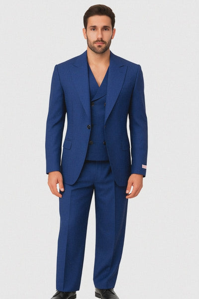 Tiglio Rosso Suit - Classic Fit Athletic Cut 100% Wool Super 150s Italian Fabric Peak Lapel in Color Blue