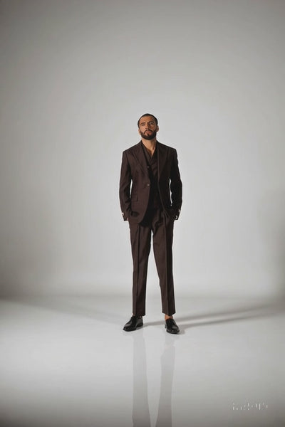 Tiglio Rosso Suit - Classic Fit Athletic Cut 100% Wool Super 150s Italian Fabric Peak Lapel in Color Chocolate Brown