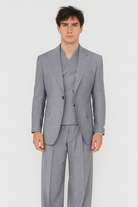 Tiglio Rosso Suit - Classic Fit Athletic Cut 100% Wool Super 150s Italian Fabric Peak Lapel in Color Light Gray