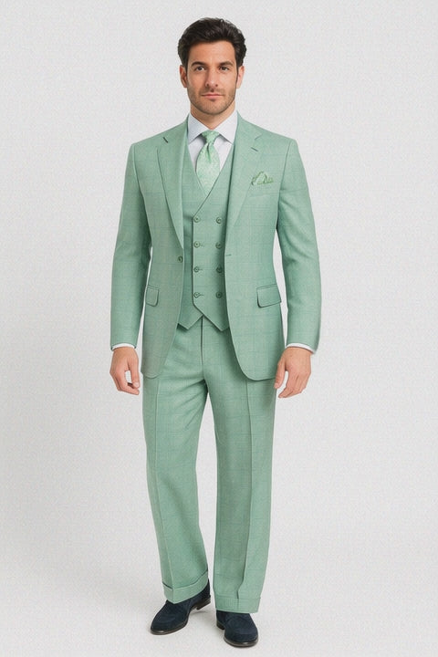 Tiglio Rosso Suit - Classic Fit Athletic Cut 100% Wool Super 150s Italian Fabric Peak Lapel in Color Mint Green