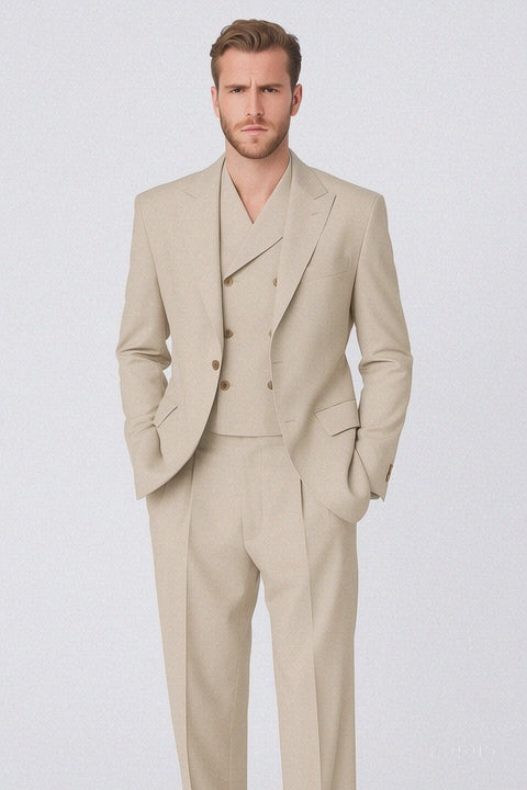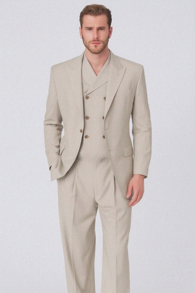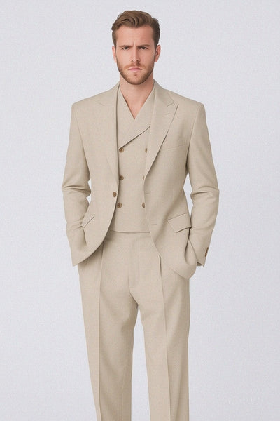 Tiglio Rosso Suit - Classic Fit Athletic Cut 100% Wool Super 150s Italian Fabric Peak Lapel in Color Tan