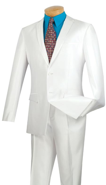 Tuxedo & Formal Shiny White Trimmed Slim Fit Suits Fitted Style Men's Sharkskin Suit