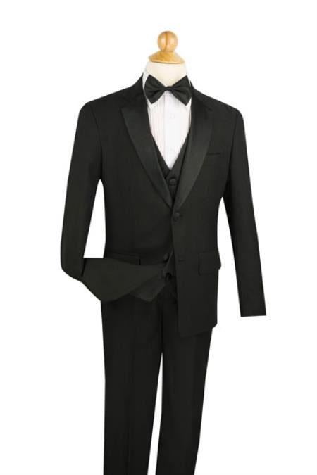 Two Button Boy's 5 Piece Tuxedo Pleated Pant,Shirt And Bow Tie Kids Sizes Black Perfect for toddler Suit wedding attire outfits