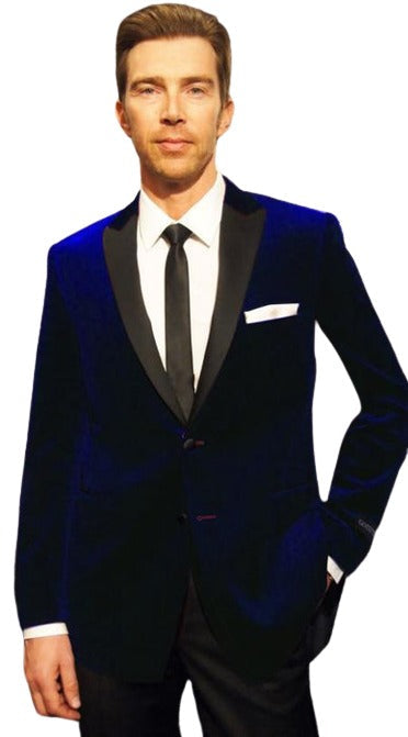 Velvet Velour Blazer Formal Dark Blue Sport Coat Two Tone Trimming Notch Collar