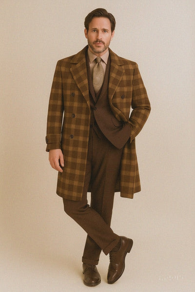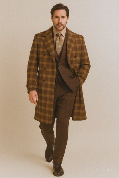 Veno Giovanni Men's 100% Wool Full Length Length Top Coat Double Breasted
