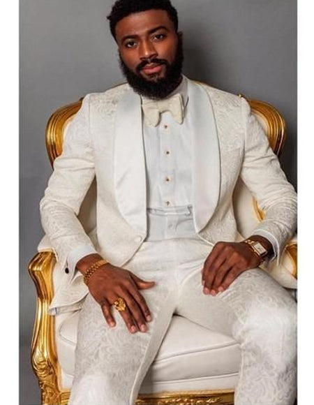 White Shawl Collar Paisley Suit Jacket and Matching Pants